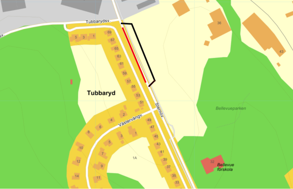 Vecka 38 utför vi grävarbeten längs med Sternövägen i höjd med Tubbaryd och Bellevue. Det innebär att trafiken leds om nattetid via Bellevues parkering.