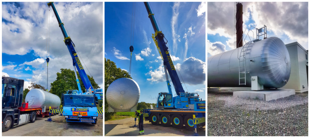 Nu i veckan levererades både containerpannan och bränsletanken till Mörrum, och står på plats redo för nästa etapp i projektet. Återstående arbete är att koppla in rör, dra fram el, dockning till vår befintliga panncentral ska kopplas på och tankstation ska ställas på plats.